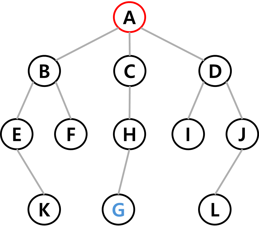 목표인 G에 도착했기 때문에 탐색을 종료한다.