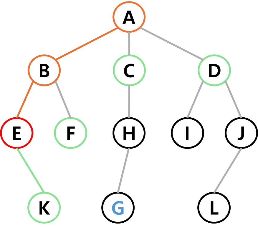 목적은 간선에 따라가며 지정된 정점(목표)에 도달하는 것이다.