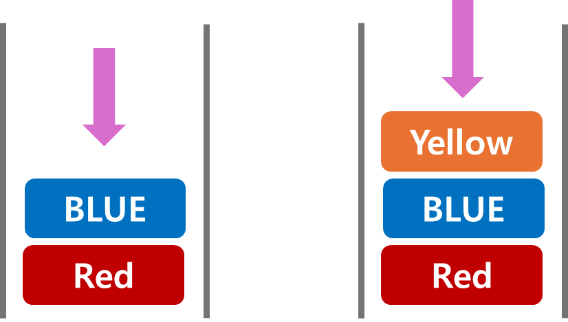그래서 왼쪽부터 살펴보면 가장 먼저 들어가있던 Red를 꺼내고 다음 Blue가 빠져나왔다.