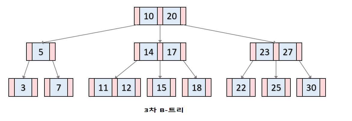 또한, 앞서 설명한 이진 탐색 트리의 경우 각 노드의 자식 노드가 최대 두개 였는데, 이를 m개로 확장하고 자식 노드 수에 자유도를 부여하여 트리의 균형을 맞춘 B 트리라는 것도 있다.