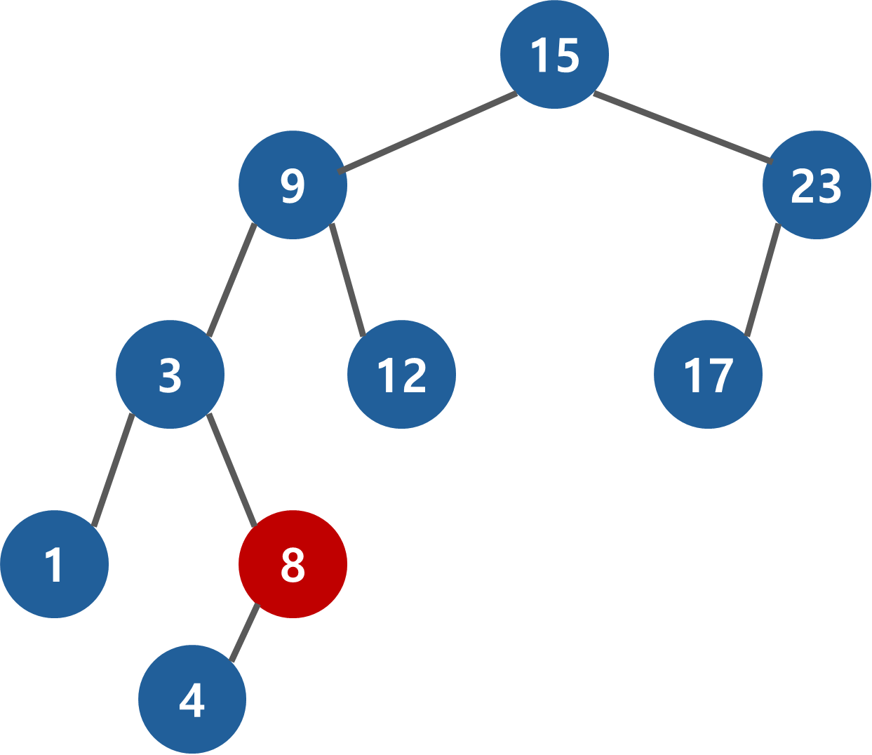 두번째 경우는 자식 노드가 하나 있을 경우 이다. 이 경우를 알아보기 위해 8을 삭제해 보겠다.