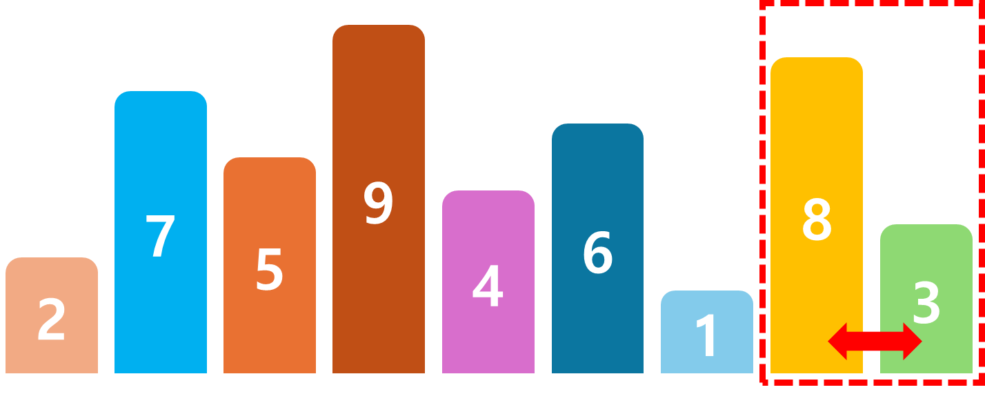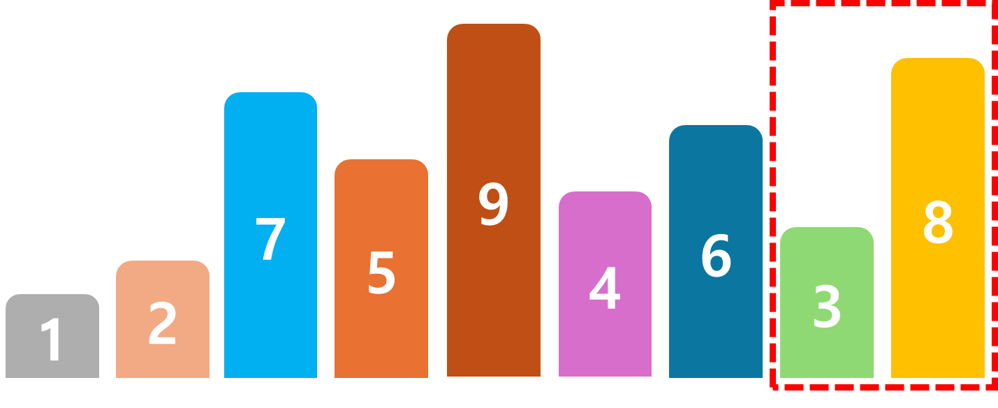 가장 오른쪽에 있는 3과 인접한 8과 비교해주면 8 > 3 이기 때문에 숫자를 교체한다.