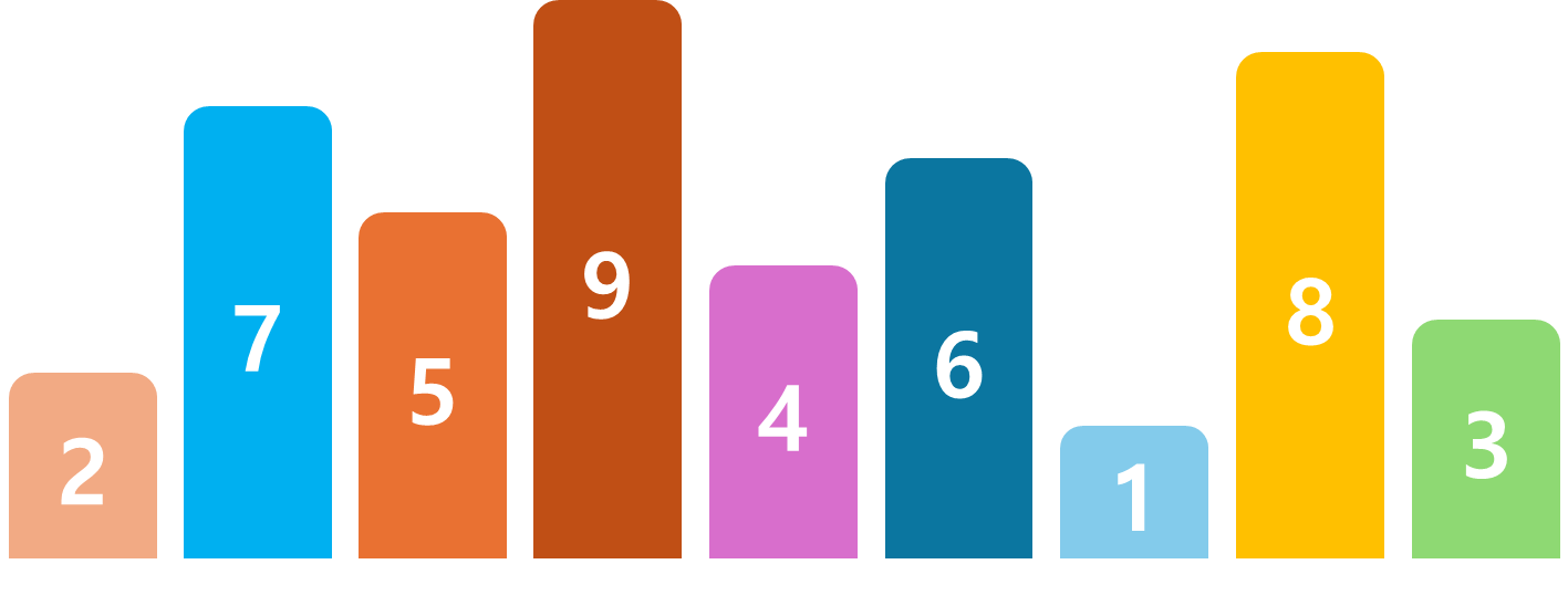 1부터 9까지 랜덤으로 배치된 수열을 버블 정렬로 정렬해 보겠다.