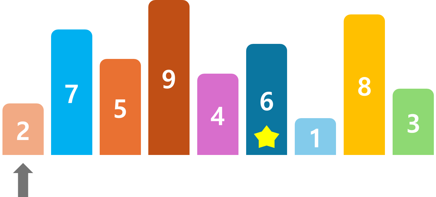 단순하다. 배열의 가장 먼저인 왼쪽 부터 차례대로 6이 맞는지 확인하면 된다.