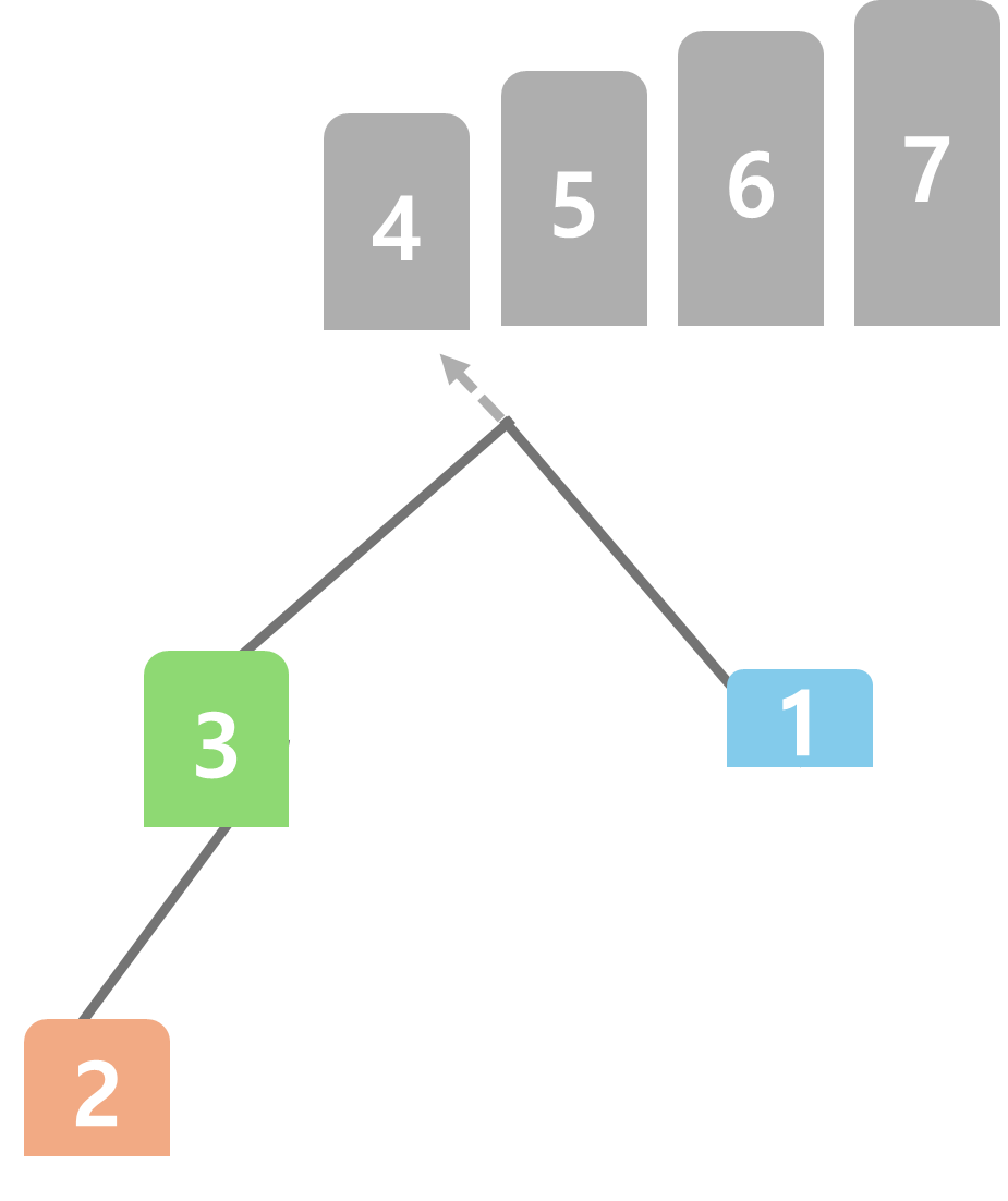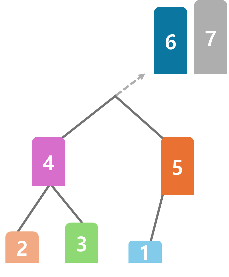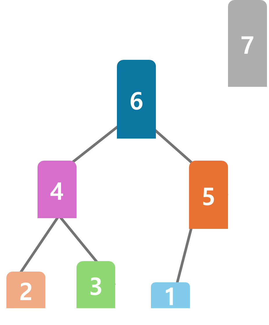 다시 뿌리에 있는 6을 꺼내 7 옆에 정렬해 두고