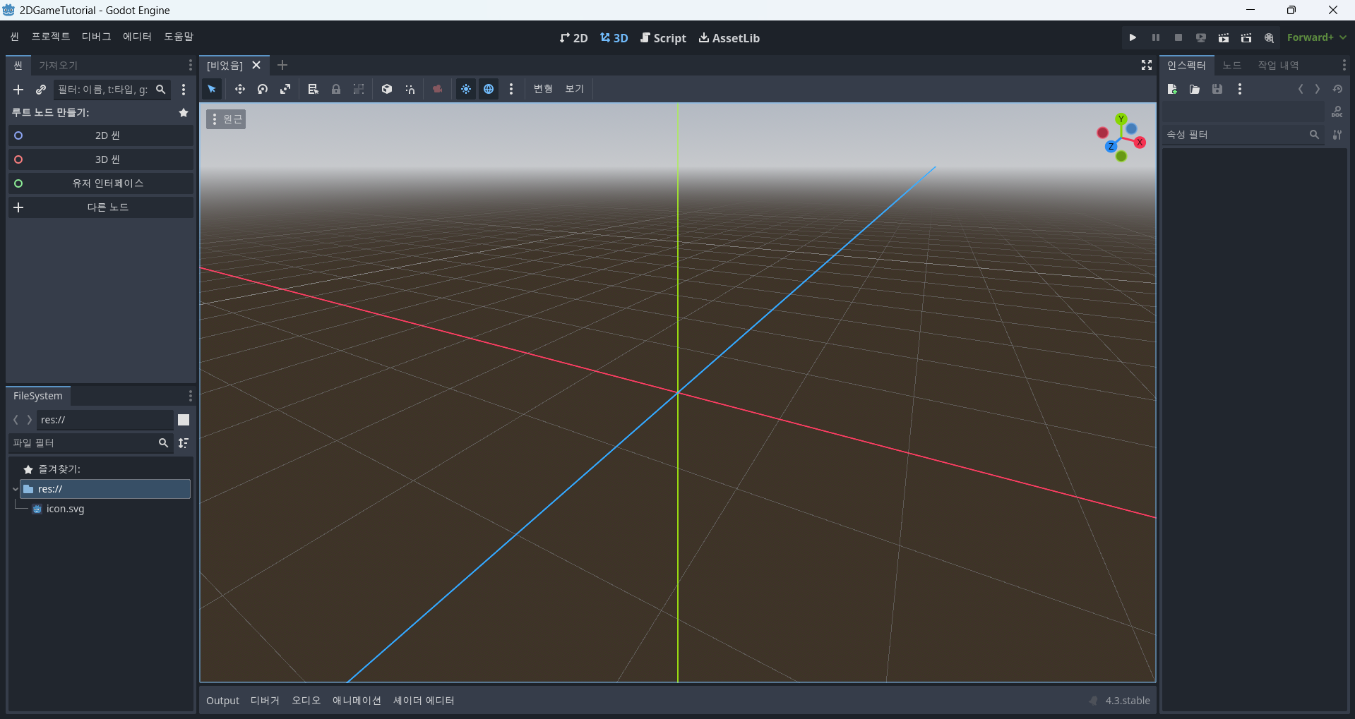 프로젝트 생성과 기본적인 화면 설정을 완료했다.