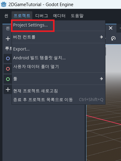 다시 고도엔진 편집기를 열어서 상단 메뉴에서 프로젝트를 누르고, Project Settings...를 눌러준다.