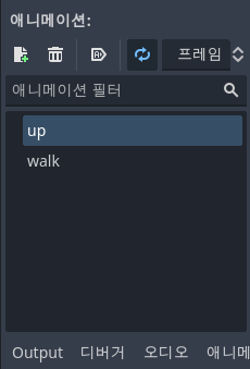 우선 default를 'up'으로 바꿔주고 애니매이션 추가 버튼을 눌러 'walk'도 추가해준다.