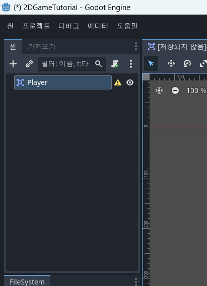 먼저 플레이어의 루트 노드를 생성해 줘야한다. 일반적으로 씬의 루트 노드는 객체가 원하는 기능, 즉 객체가 무엇인지를 반영해야한다.