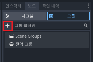 Mob씬에서 노드 메뉴에 그룹으로 들어가서 + 버튼을 눌러 그룹을 생성 창을 띄우자.
