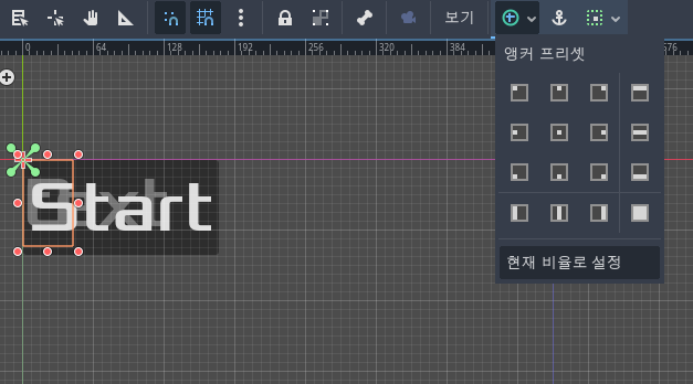 노드를 드래그 해서 위치를 설정해줄수도 있지만, 'Anchor Presets'을 통해 더 정확하게 배치해줄 수 있다.