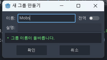 그룹이름을 'Mobs'로 지정하고 그룹을 생성해주면 된다.