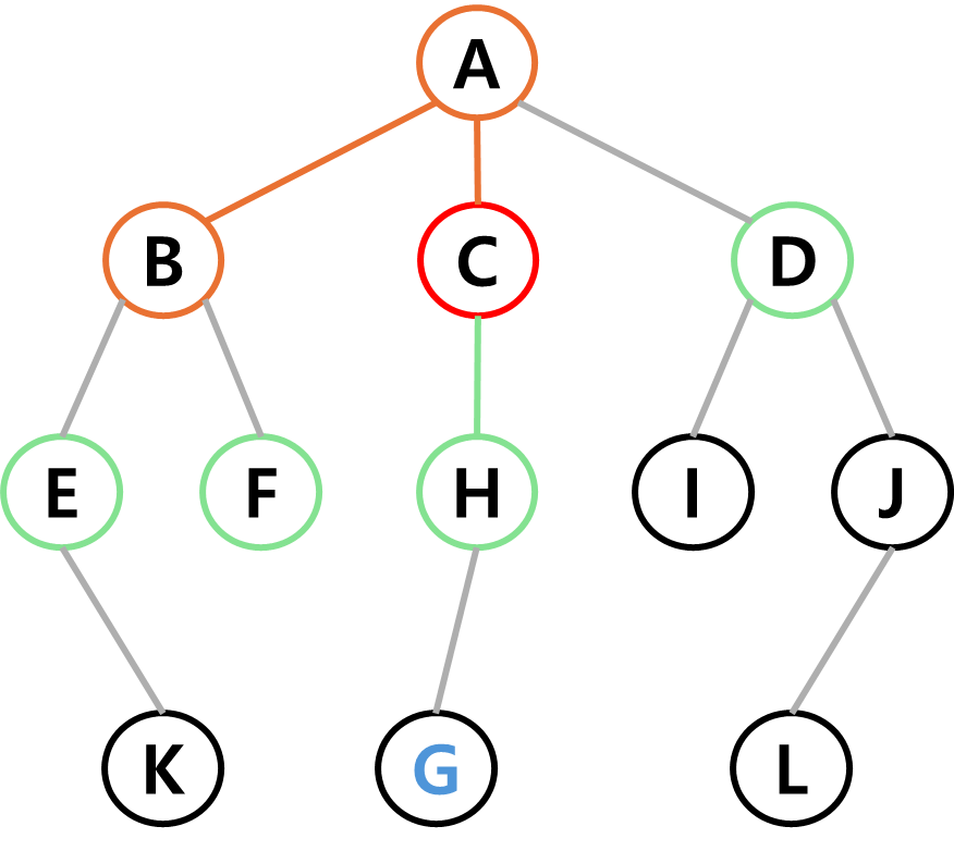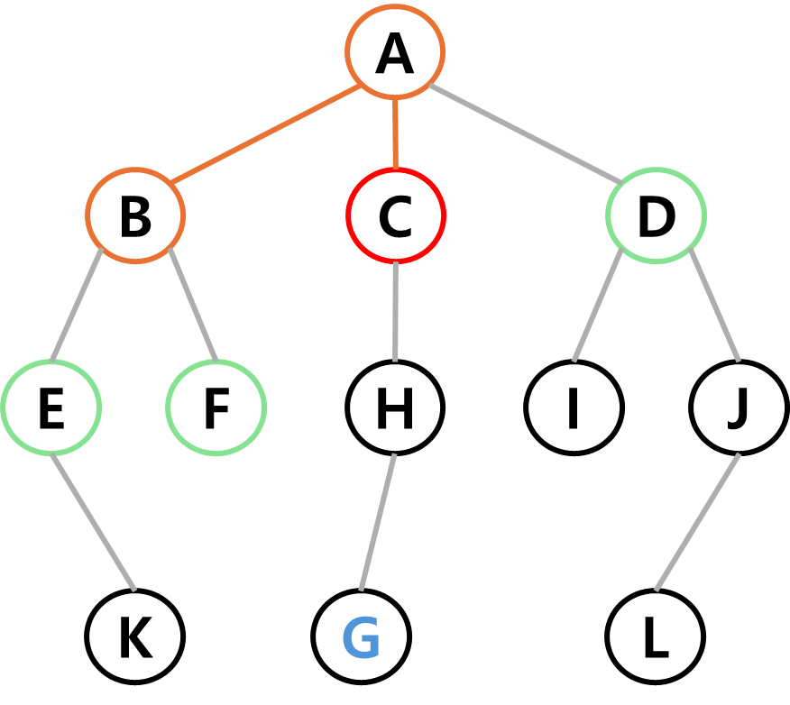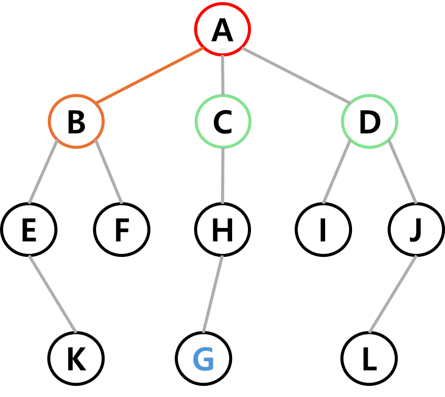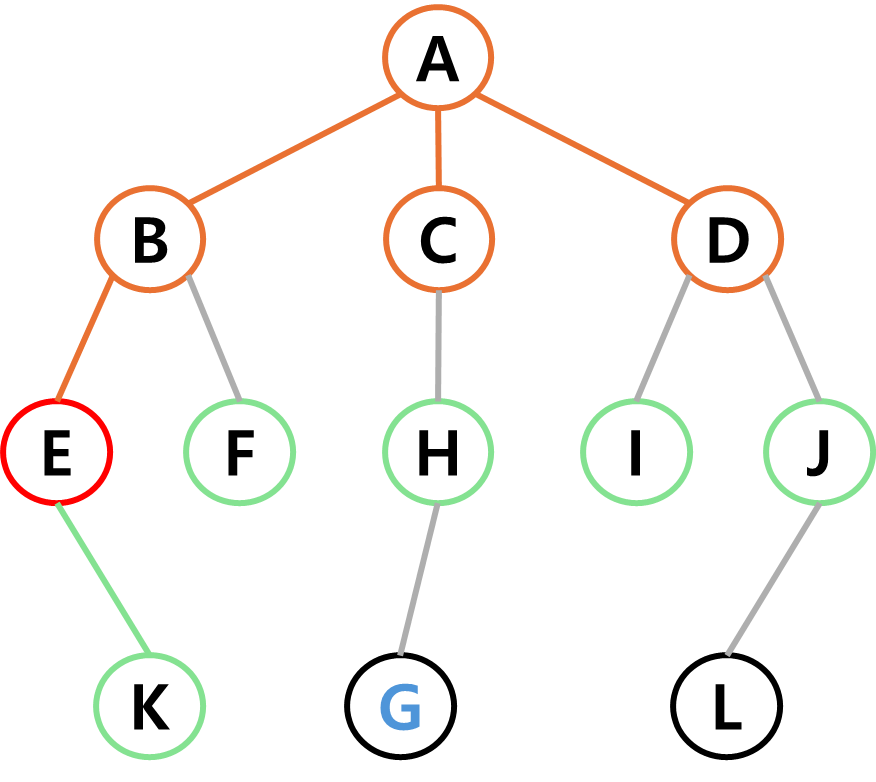 목적은 시작점에서 간선을 따라가며 정점을 탐색하여 지정한 정점(목표)에 도달하는 것이다.